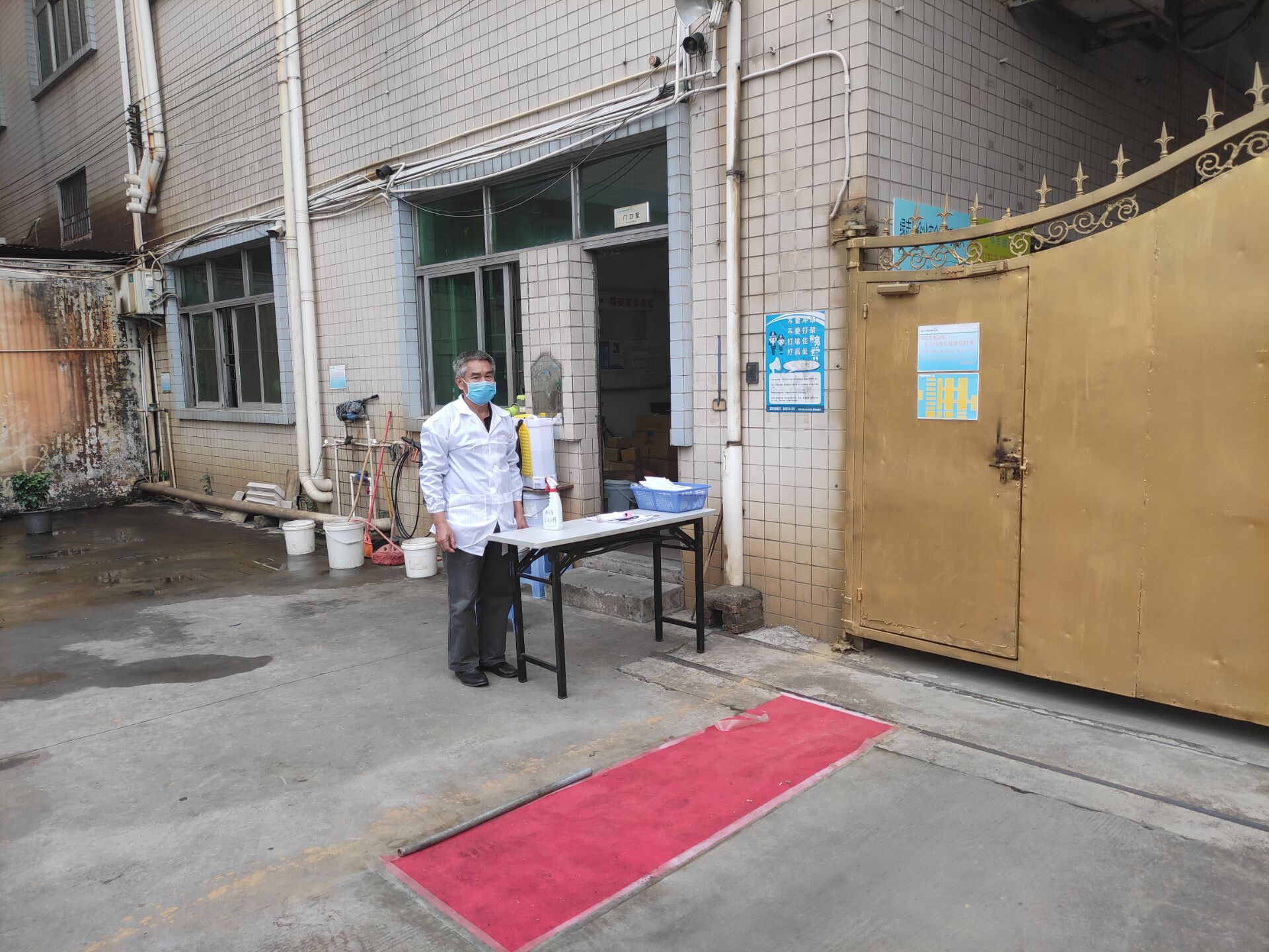 賴總對車間每個角落用84消毒水進行消毒