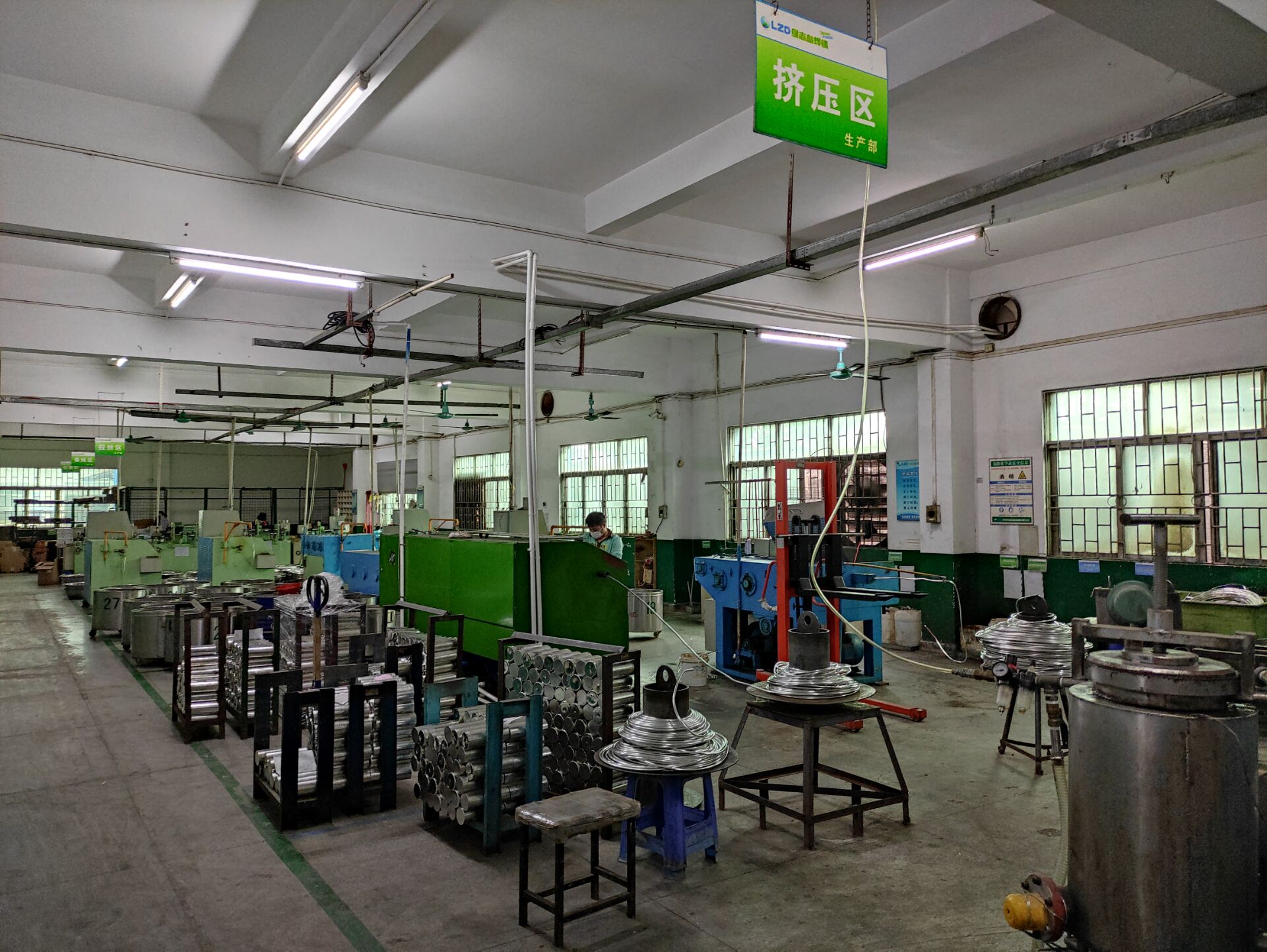 化工部梁工在拉絲機上幫忙